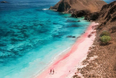 Salah satu destinasi paling fenomenal di Indonesia adalah Pantai Pink yang terletak di Kawasan Taman Nasional Komodo, Nusa Tenggara Timur. Sesuai namanya, pantai ini memiliki pasir berwarna merah muda yang sangat cantik, kontras dengan air laut berwarna biru toska. Warna pink ini berasal dari organisme mikroskopis bernama Foraminifera yang memberikan pigmen merah pada koral, kemudian hancur dan bercampur dengan pasir putih.